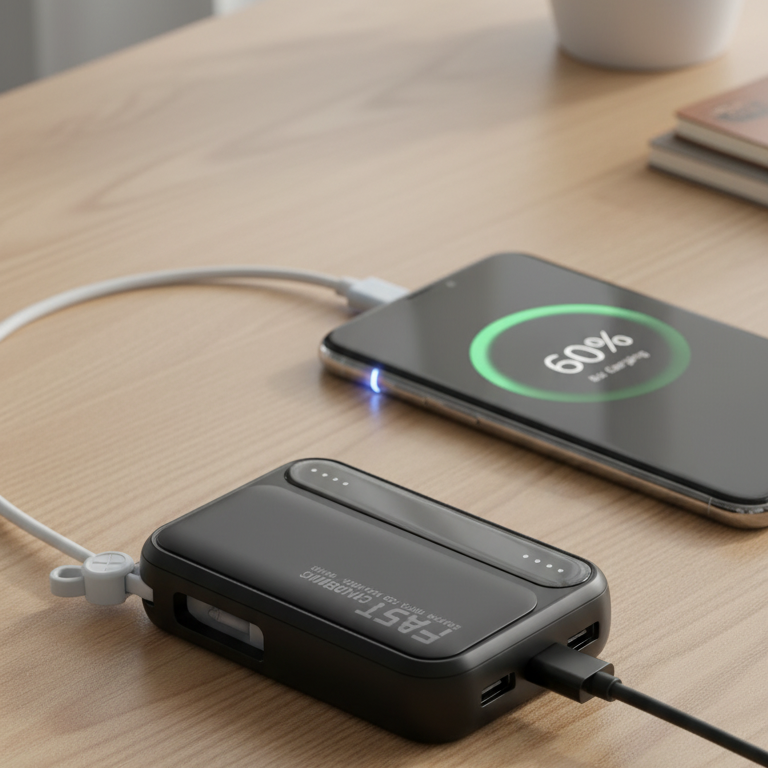 "Finally… a power bank that actually lasts! I used it on a 3-day work trip and didn’t have to charge it once. The built-in cables are a lifesaver."